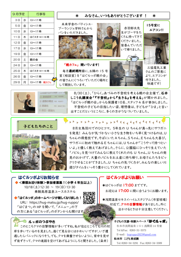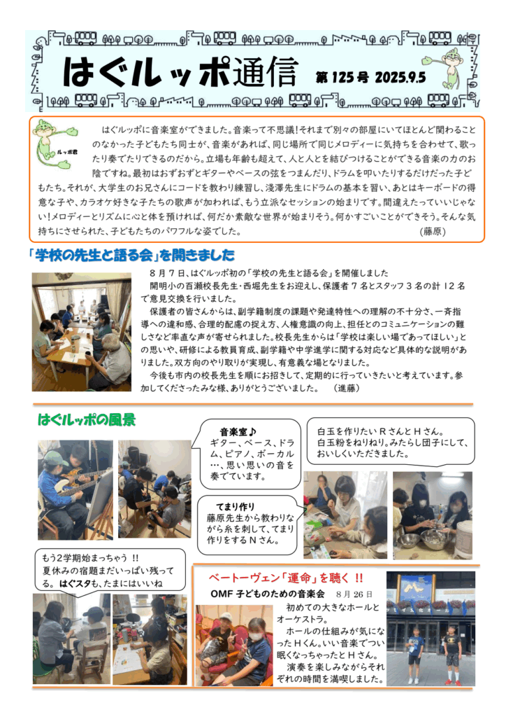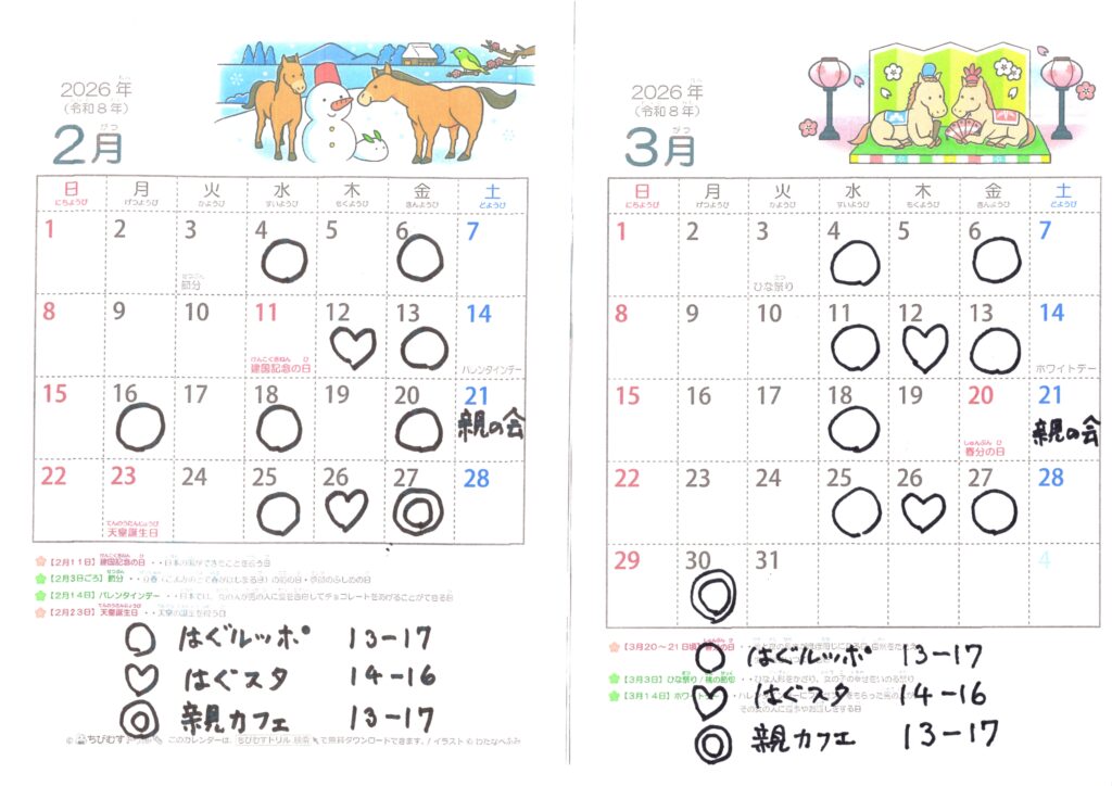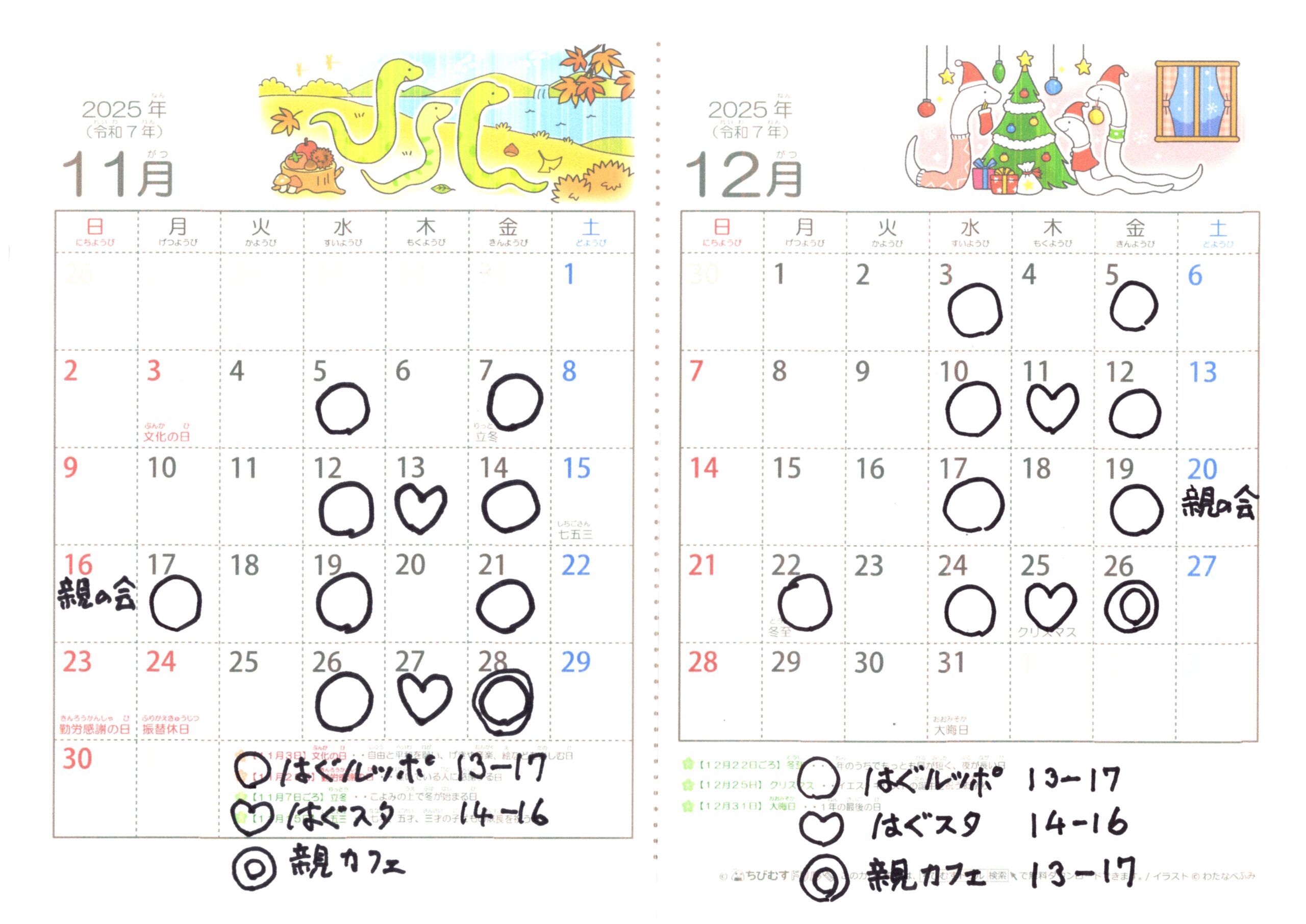 - 「はぐルッポ親の会」 毎月第3土曜日