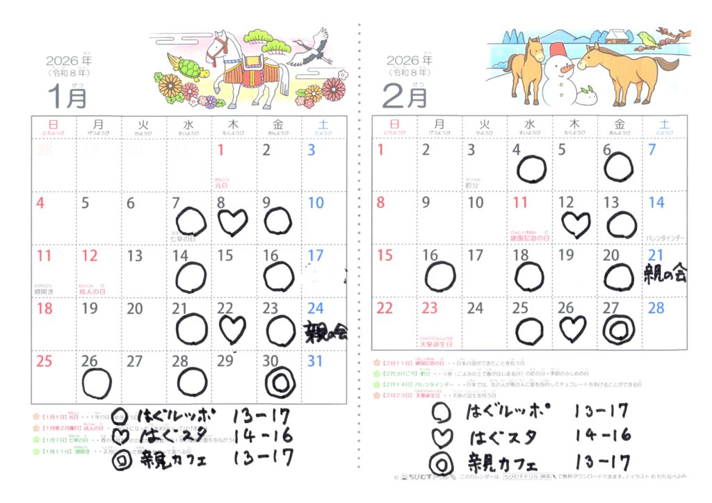 1月の親の会が17日から24日に変更になりました。