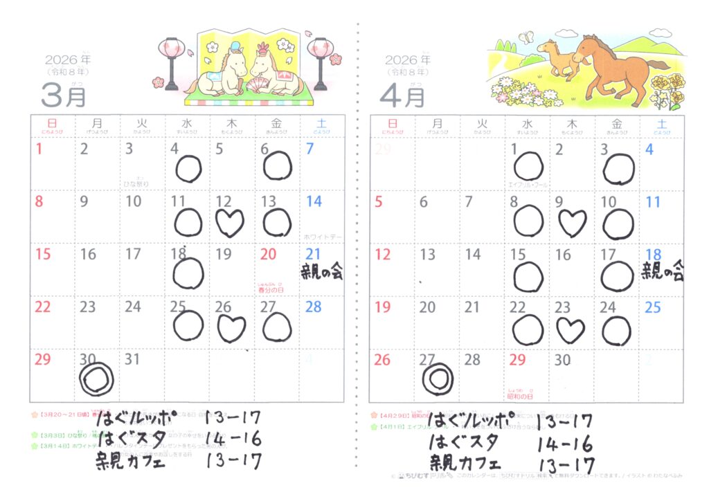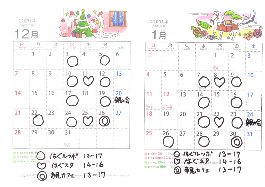 - 「はぐルッポ親の会」 毎月第3土曜日