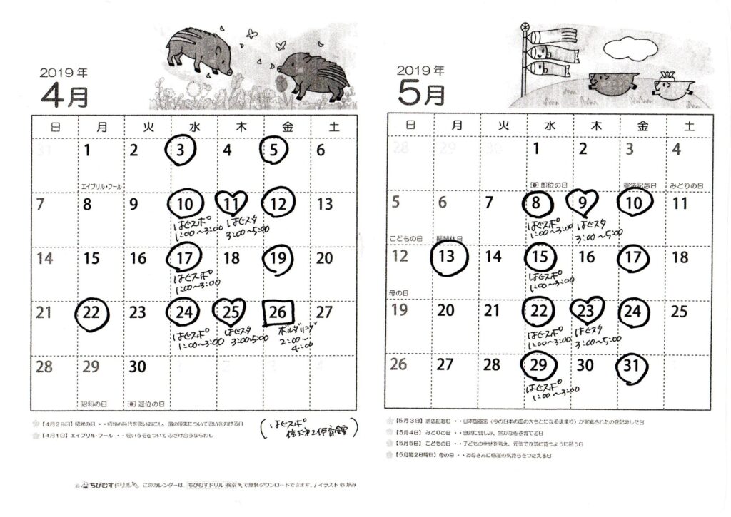 はぐルッポ開所日カレンダー 4.5月 2019 4/12 はぐルッポカレンダー 2019年4月12日 2019年4月12日 はぐルッポの4月5月の予定です。 はぐルッポカレンダー はぐルッポ開所日カレンダー 3.4月 はぐルッポ開所日カレンダー 5,6月 関連記事 はぐルッポ開設日カレンダー 8月、9月 2025年7月4日 はぐルッポ開所日カレンダー 7、8月 2025年7月4日 「はぐルッポ」開所日カレンダー 6月、7月 2025年6月6日 はぐルッポ開設日カレンダー 5月、6月 2025年5月16日 はぐルッポ開所日カレンダー 4月、5月 2025年4月13日 はぐルッポ開所日カレンダー 3月、4月 2025年3月3日 はぐルッポ開所日カレンダー 2月、3月 2025年2月2日 はぐルッポ開所日カレンダー1月、2月 2025年1月5日