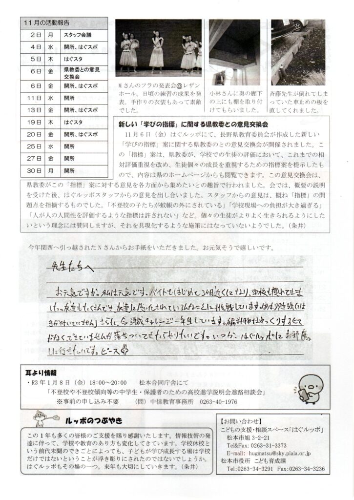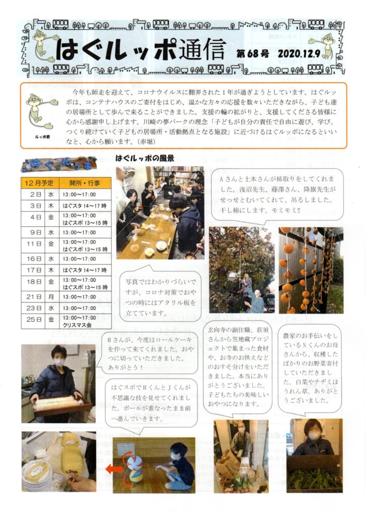 はぐルッポ通信(第68号)を発行しました。(不登校・不登校傾向、登校拒否などの状態にある子どもたちへの居場所提供、相談支援)