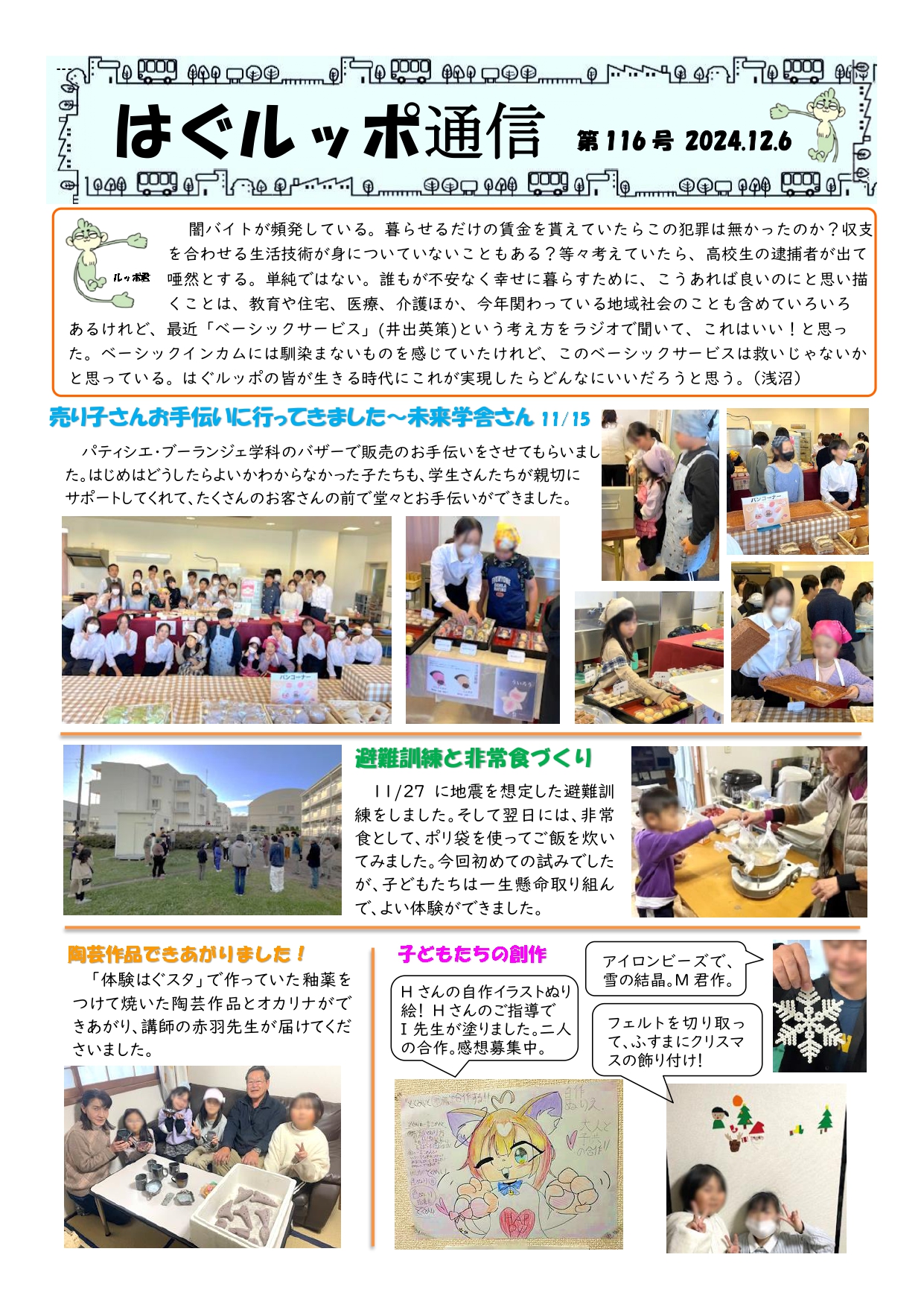 はぐルッポ通信(第123号)を発行しました。(不登校・不登校傾向、登校拒否などの状態にある子どもたちへの居場所提供、相談支援)