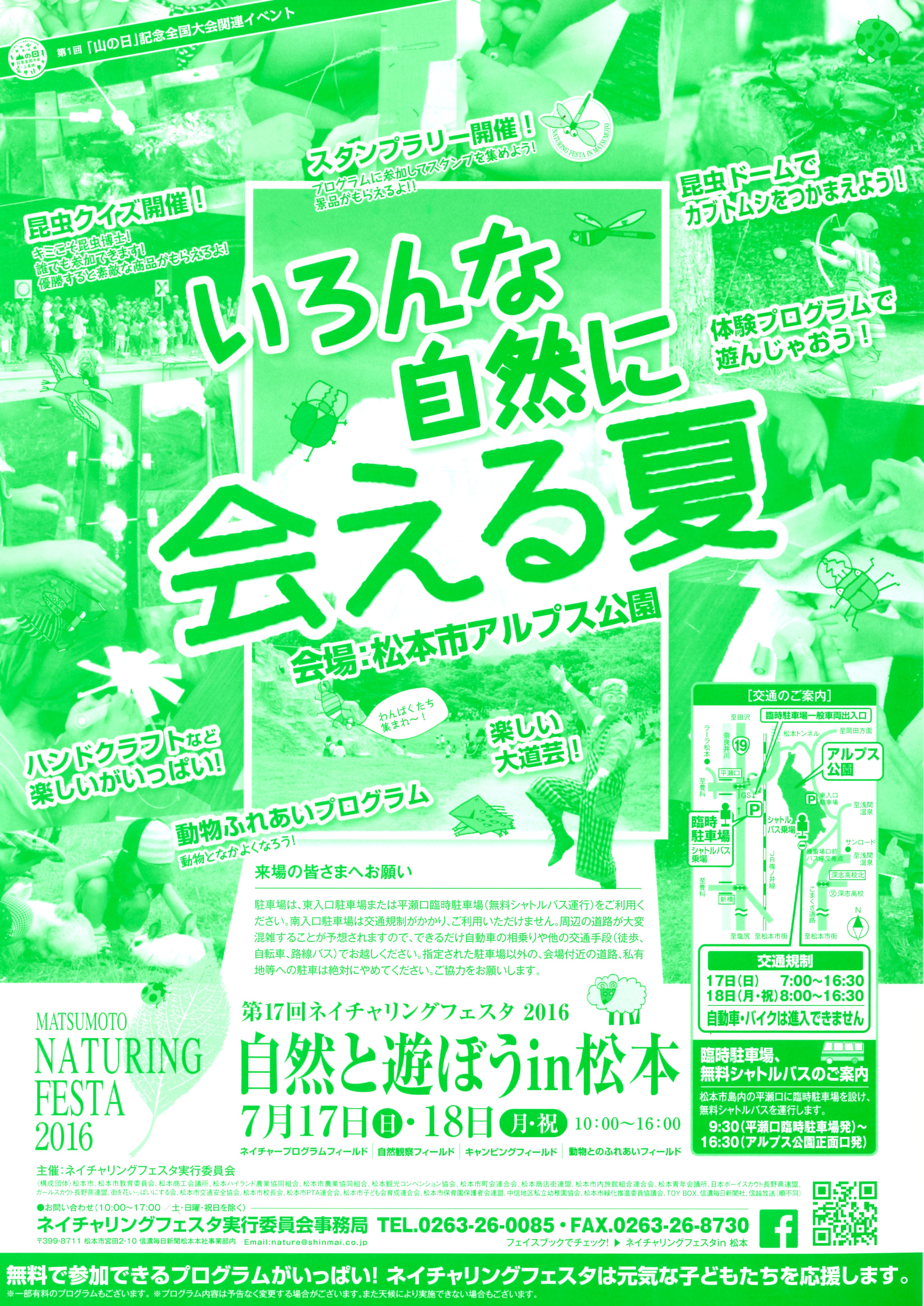 信濃毎日新聞松本本社事業部内 ネイチャリングフェスタ実行委員会事務局(☎0263-26-0085、FAX0263-26-8730)