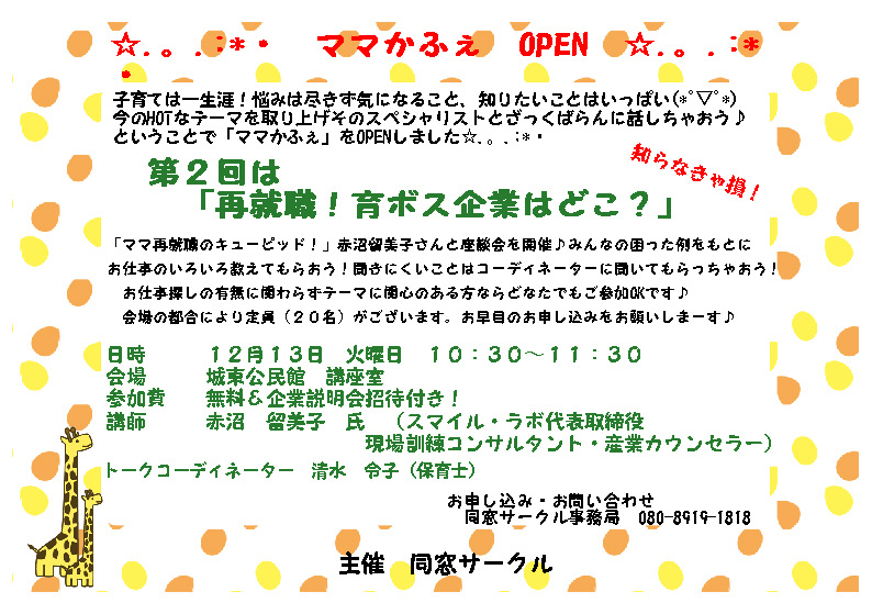 第2回ママかふぇ☆.。.:*・再就職!育ボス企業はどこ? 2016 12/10 2016年12月10日 2016年12月10日 地図を読み込んでいます... 松本市北部福祉複合施設 ふくふくらいず元町3丁目7番1 - 松本市イベント 36.2505148 137.98372949999998 日時 2016/12/1310:30 AM - 11:30 AM 場所 松本市北部福祉複合施設 ふくふくらいず カテゴリー カテゴリーはありません はぐまつBlock この記事を読まれた方はこんな記事も読まれています 1.赤ちゃんにも安心して使える市販薬!薬剤師パパが教えます 2.乳幼児を持つパパとママへ | 長引くその高熱は「川崎病」かも? | 長女が発病した時の様子 3.松本市|書道教室生徒募集 4.松本市で子連れランチ!専用スペースもあるオススメスポット5選! 5.子ども支援・相談スペース「はぐルッポ」 6.子どもの習い事”空手を始めた娘の変化”と空手を習わせるメリット・注意点 7.【お悩み】子どものわきが対策で手術する前に考えてほしいこと 8.薬との飲み合わせに注意が必要な飲み物4選 10.夏でもおススメ!北信州で非日常体験をしよう! ・【松本山雅の来季に期待!】FC東京の試合を子供と一緒に観戦!味の素スタジアムに行こう ・【徹底解説】エシレバターとは?発酵と非発酵バターの違い、店舗や購入方法も紹介 ・【ズボラでOK】室内で育てやすいおすすめ観葉植物5選!種類や育て方も解説 ・【ナイキのおすすめスニーカー5選】コーディネイトしやすい人気商品を厳選! ・明智光秀と細川ガラシャの子孫 ・明智光秀と信長の年齢差 ・曲がっているのが美味しい「松本一本ねぎ」を紹介します! ・野沢温泉村の伝統野菜「野沢菜」を紹介します! ・世界を魅了する安曇野ワサビを紹介します! ・お財布の中身を整理するために私が実践している方法と4つの理由 ・プロテインは非常食にもなる!? ・【FPが8社を比較】ファイナンシャルプランナー無料相談におすすめの保険ショップ3選 スポンサー ミニマリストFPのMayalog | ミニマ... 【ファイナンシャルプランナー相談の注意点 完全保存版】FPが15人以上のFPに相談した経験から解説 | ミニマ... FP(ファイナンシャル・プランナー)がFPの無料相談・有料相談の注意点に解説します。「なぜ無料?」「怪しい?」という疑問から、他相談の仕組み・口コミ・おすすめできる... https://a2poyo.com/plants/ ミニマリストFPのMayalog | ミニマ... 【FPが13社比較】ファイナンシャルプランナー無料相談におすすめの保険ショップ4選 | ミニマリストFPのMaya... ファイナンシャルプランナー(FP)の無料相談が可能な保険ショップを13社比較し、ランキング形式でおすすめを4選紹介します。保険ショップの無料相談を今まで20社以上経験... ミニマリストFPのMayalog | ミニマ... 【FPが解説】ファイナンシャルプランナーの無料相談で使える上手なFPの提案の断り方 | ミニマリストFPのMay... FP ファイナンシャルプランナーの無料相談後、FPの提案の断り方について紹介しています。相談後何度も連絡が来る理由、良い断り方、悪い断り方をまとめました。 カノナの信州野菜ブログ 曲がっているのが美味しい「松本一本ねぎ」を紹介します! 長野県一華やかな松本市で育まれてきた信州の伝統野菜「松本一本ねぎ」を紹介します!普通のネギと違って曲がっていることが特徴の松本一本ねぎ。どうして曲がっているので... よかったらシェアしてね! URLをコピーしました! URLをコピーしました! ベビーマッサージ♪♪ SKジュニア合唱団 Xmasコンサート この記事を書いた人 MKCSプロジェクト 関連記事 キッズパーク松本 ~期間限定室内アクティビティ~ 2025年1月8日 松本市│ミシンカフェ12月のお知らせ 2019年12月9日 松本市│ミシンカフェ12月のお知らせ 2019年12月9日 SK松本ジュニア合唱団 クリスマスコンサート2019 2019年12月9日 Ciao!Bambini(チャオ!バンビーニ)~こどもの庭~2019 2019年11月2日 松本市│松本ぱんフェス 2019年9月27日 マルシェの森 2019年9月17日 松本市│ミシンカフェ10月のお知らせ 2019年9月12日 コメント コメントするコメント ※ 名前 ※ メール ※ サイト 次回のコメントで使用するためブラウザーに自分の名前、メールアドレス、サイトを保存する。 Δ