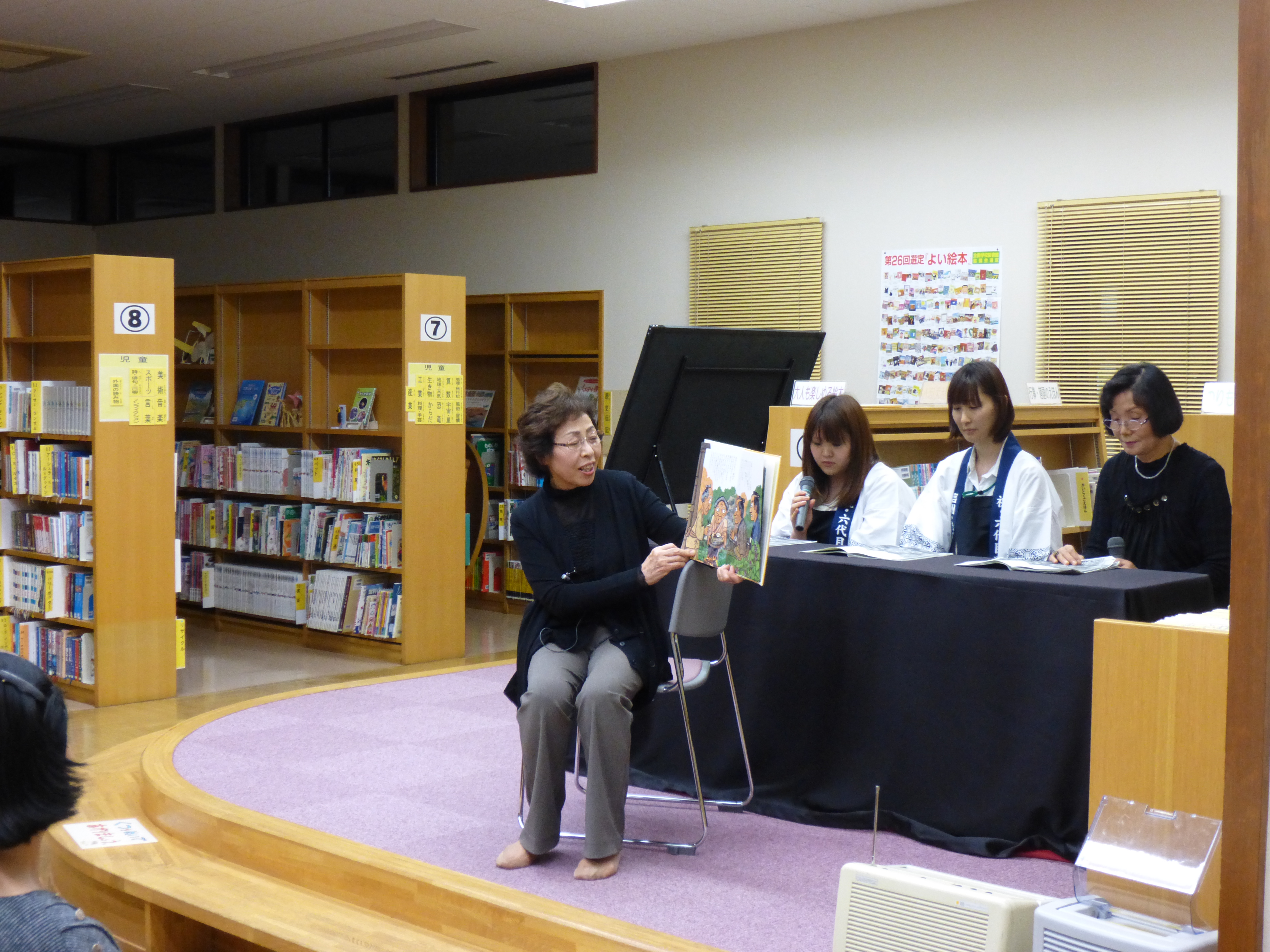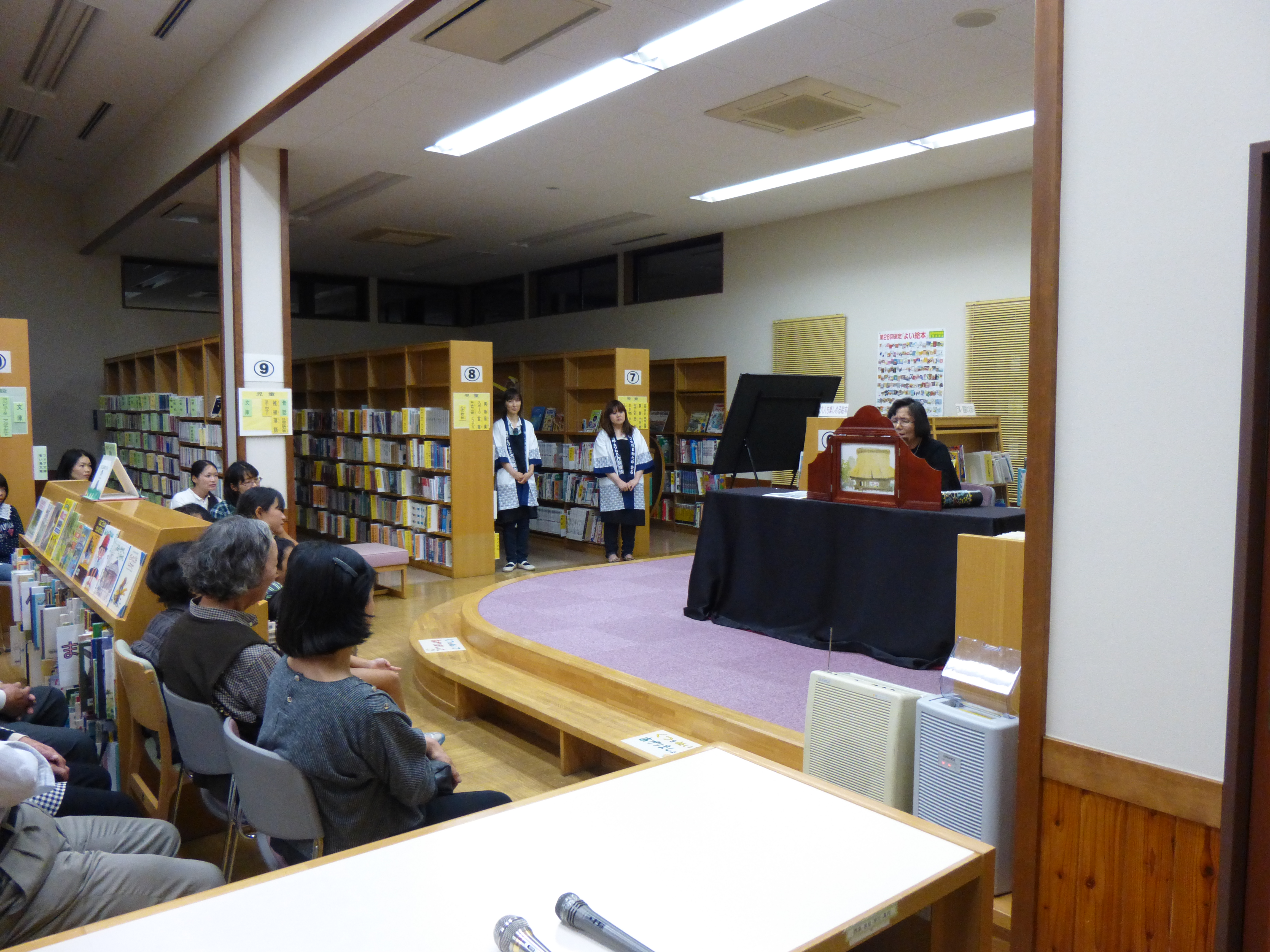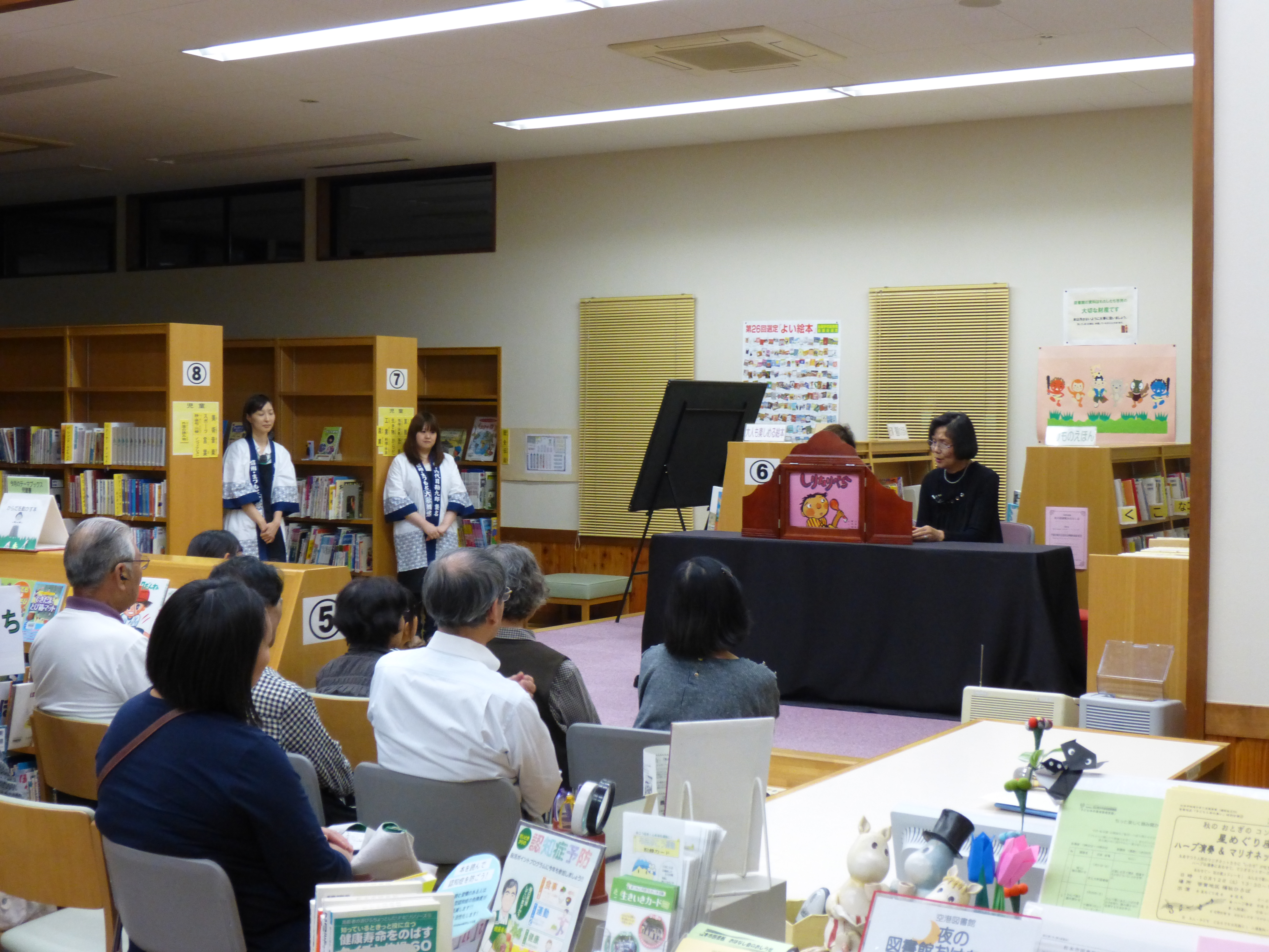 閉館後の空港図書館で、昔話や落語を中心としたおはなし会を行いました。