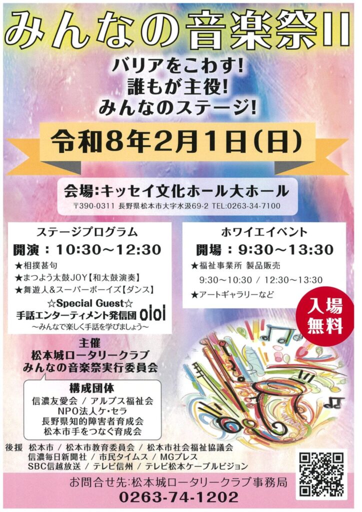 「みんなの音楽祭Ⅱ」が2月1日(日)